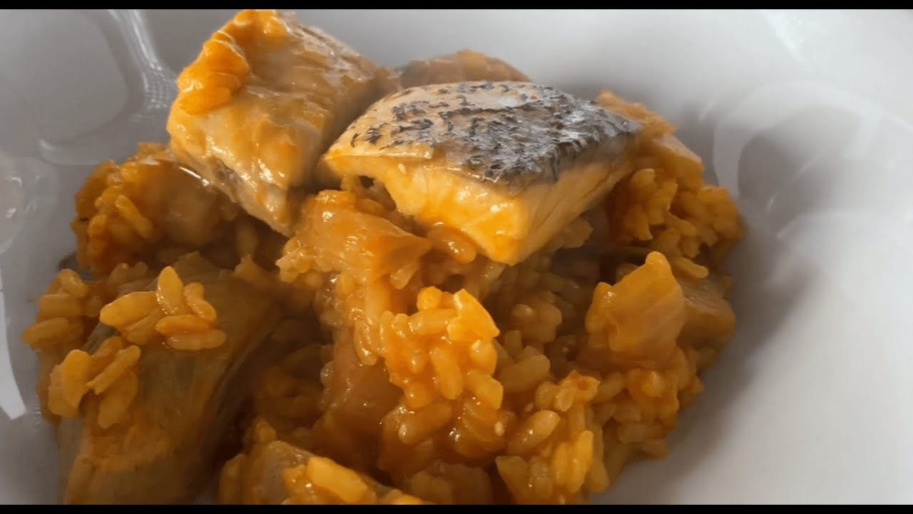 A continuación echamos el tomate frito, el arroz, un poquito de colorante y el agua y cocemos durante 20 minutos
