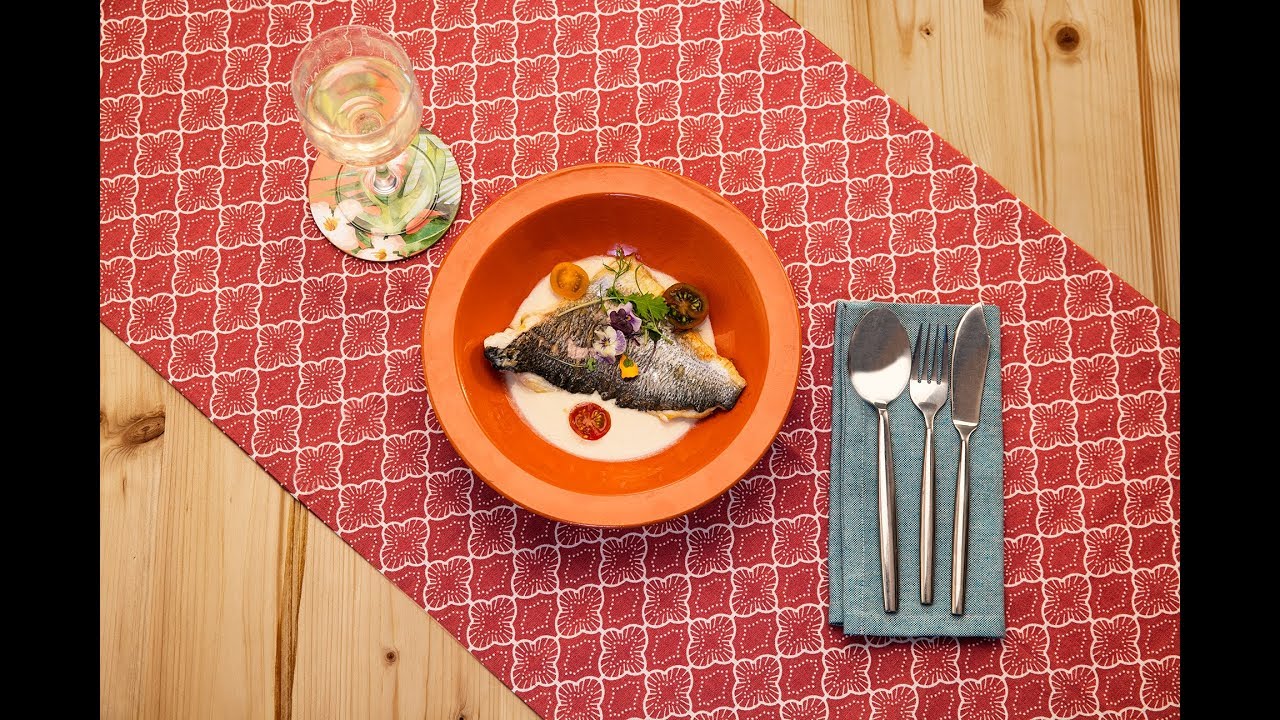 Para el emplatado coloca en la base un poco de ajoblanco y después la dorada.